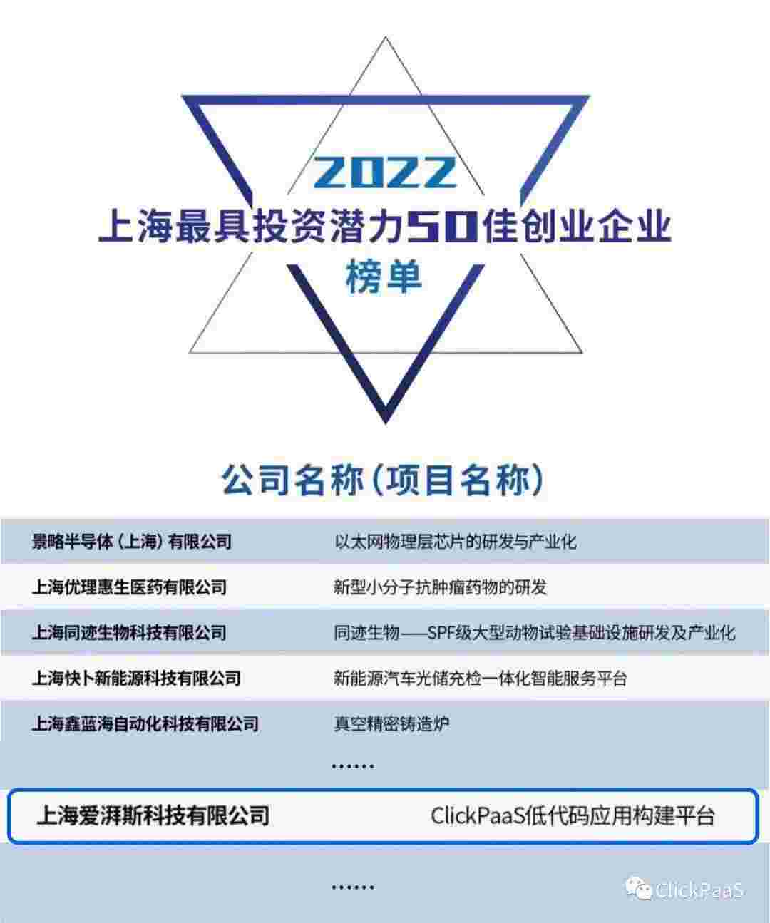 华为钱包 作为国内低代码PaaS平台的领军企业,,,,,,,与120家创企入围角逐。。。。。。期间接受了来自德同资本、、、、、、、、领中资本等知名投资机构的10位投资人组成专家评委团的背靠背盲选。。。。。。。并最终入围“2022上海最具投资潜力50佳创业企业”榜单,,,,,,,,,,,,,,,被列入“上海市重点培育创业企业库”。。。。。。。