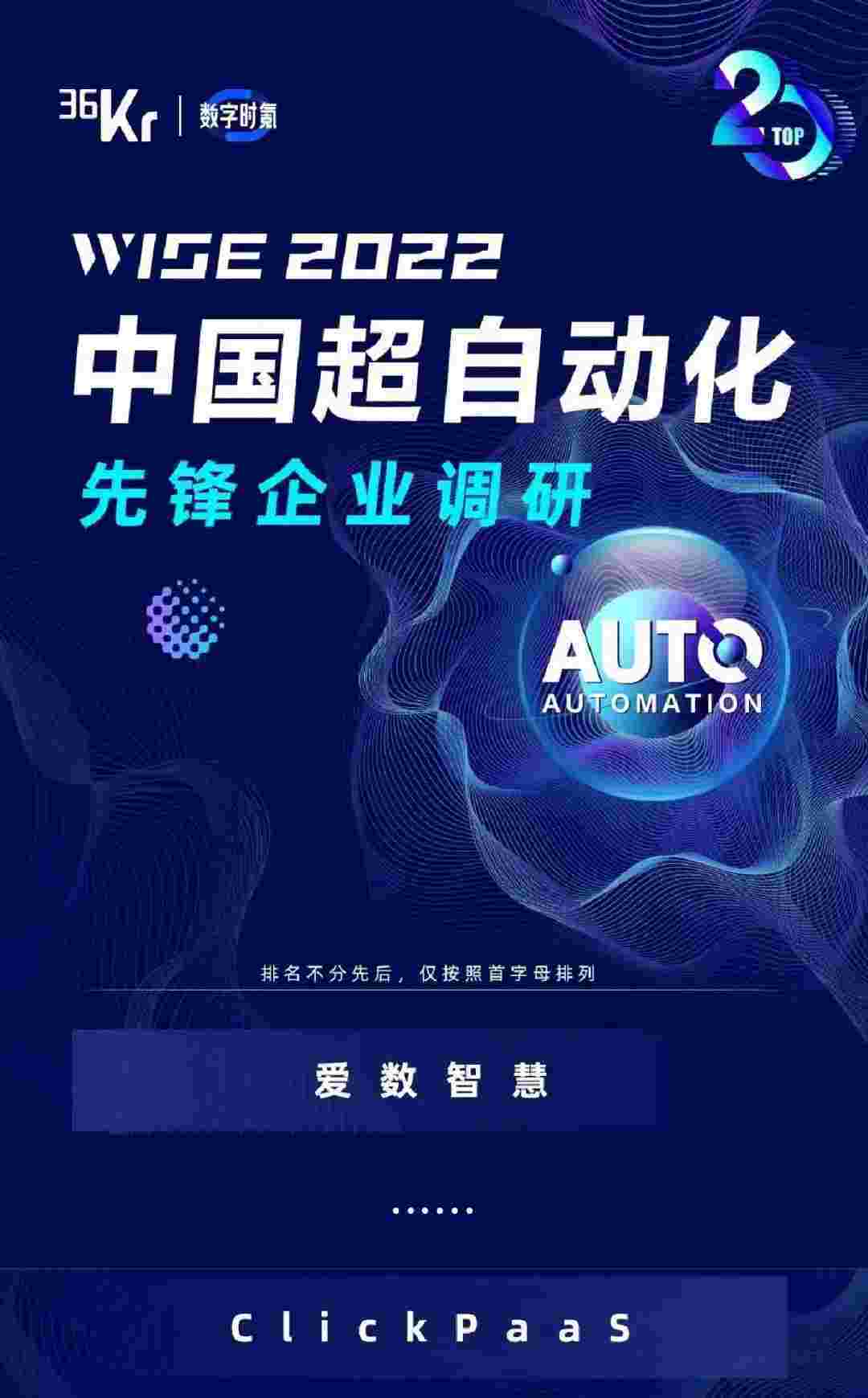 8月10日,,,,,,,,,,由36Kr主办的WISE 2022中国超自动化峰会在杭州成功举办。。。。。。。。华为钱包作为国内低代码PaaS平台的领军企业,,,,,,,,,,,,凭借过硬的技术实力和优质的产品能力,,,,,,在本次峰会中实力入选「2022年中国超自动化先锋企业」20强。。。。。。。。。。。
